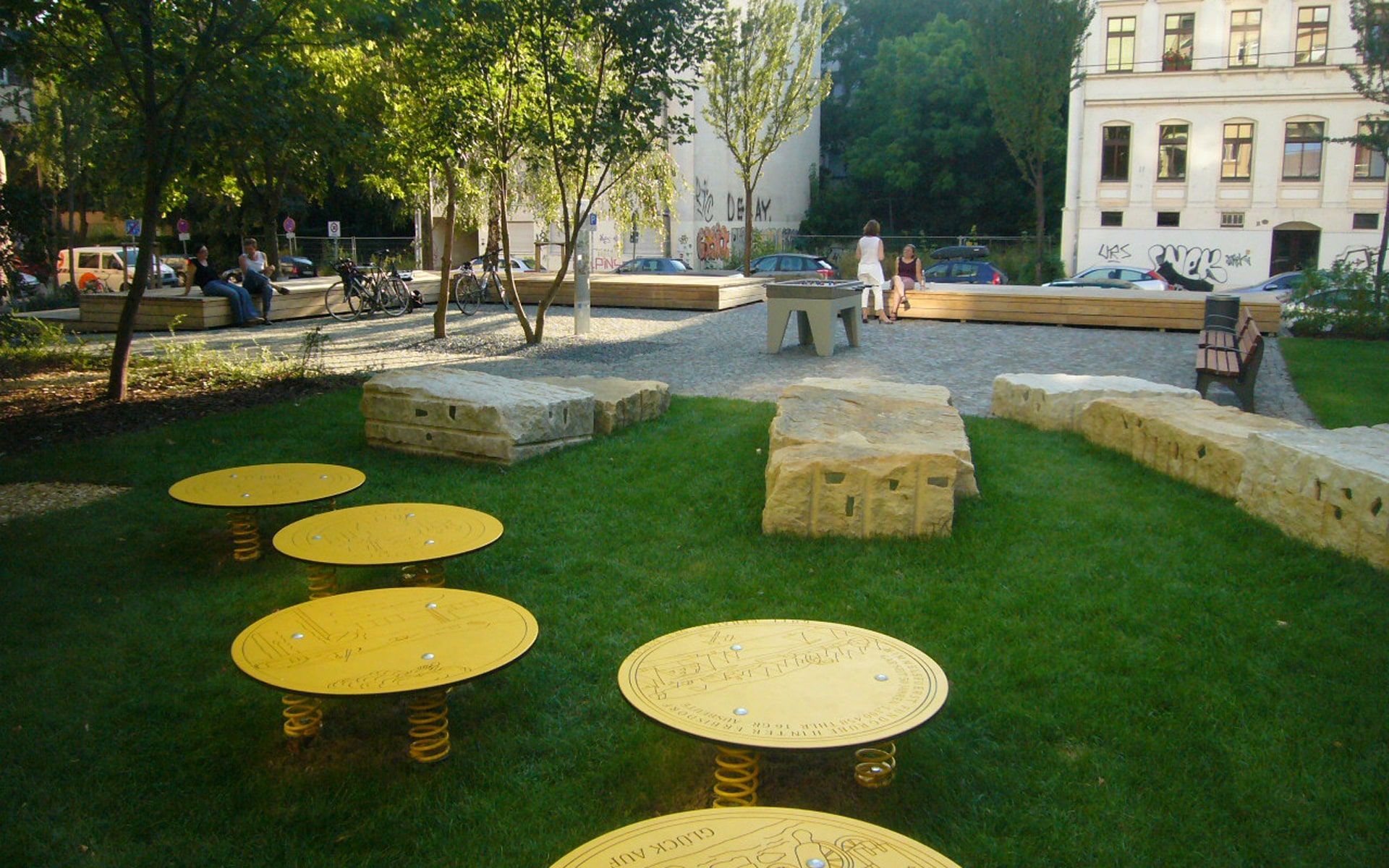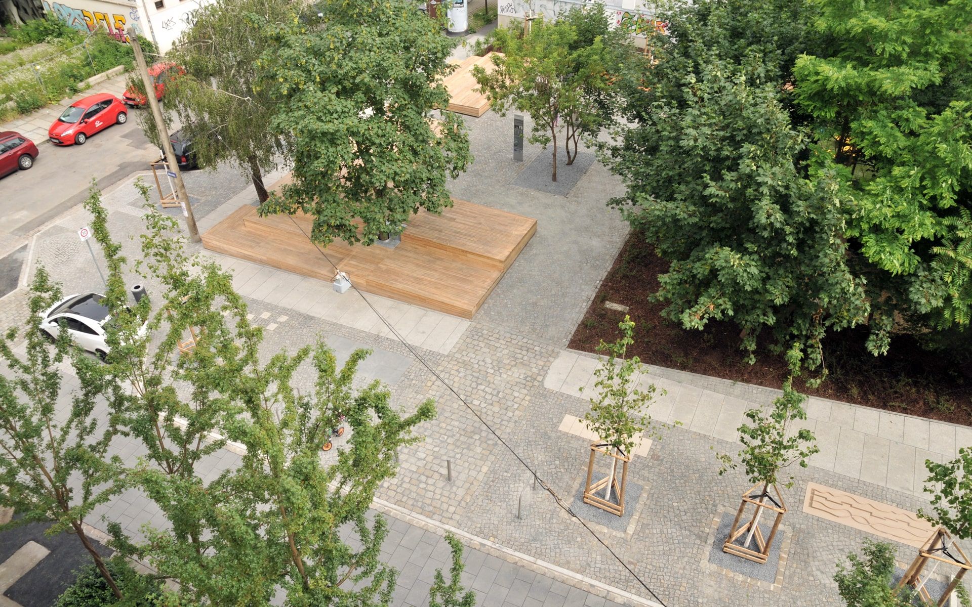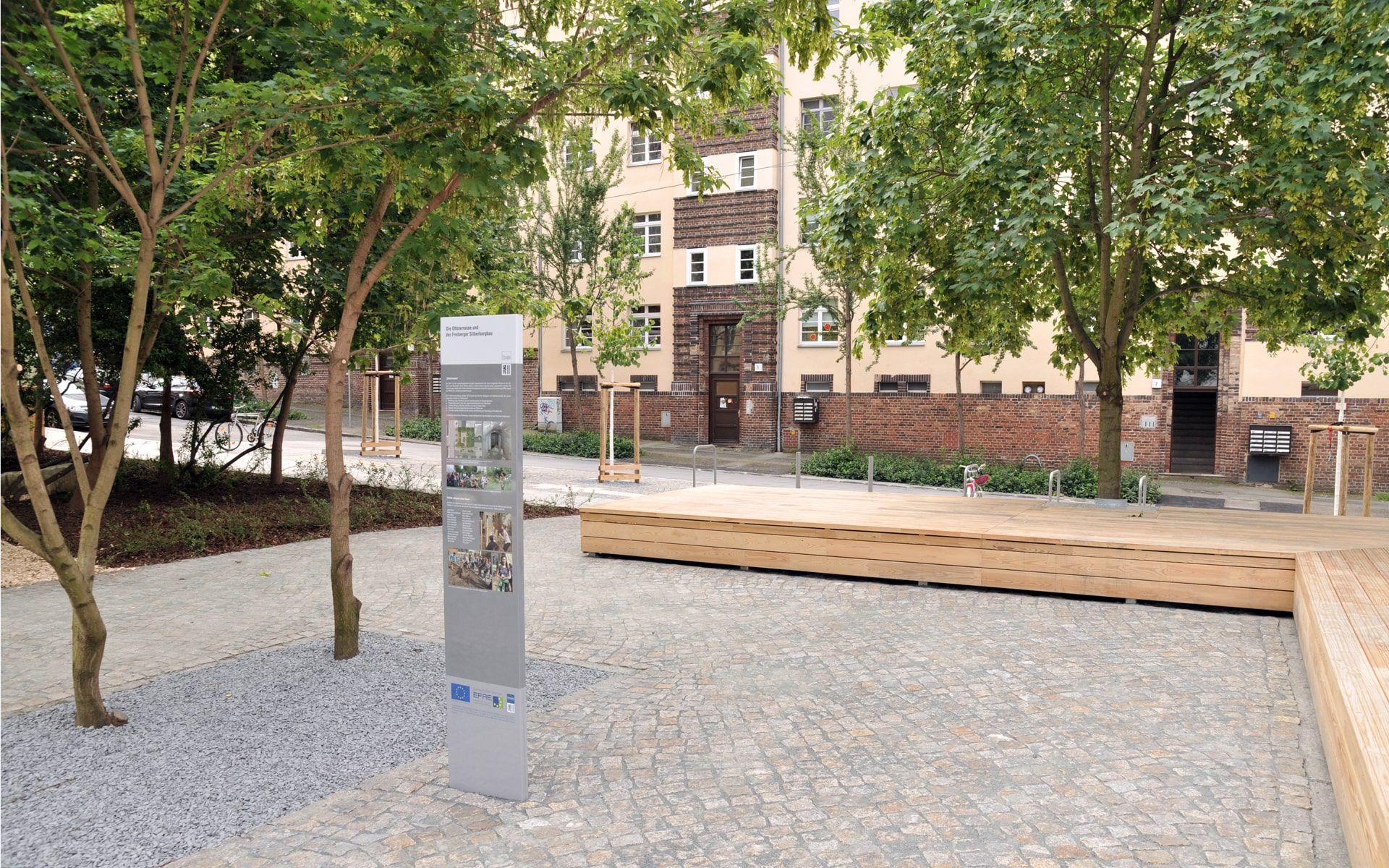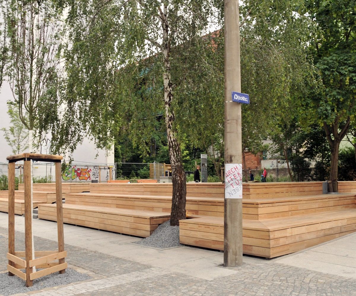 In einer Baulücke entstand auf einem ehemaligen Bunker ein Spiel- und Quartiersplatz für die Dresdner Neustadt. Aufgrund der angrenzenden Ottostraße haben wir den Namensgeber, “Otto den Reichen”, als thematischen Leitfaden ausgewählt. Der neue Platz vereint AHufenthaltsflächen mit einen Outdoor-Kicker, eine individuell entworfene Murmelbahn und viel Grünes mit spielerisch eingesetzten Bergbaureminiszenzen. Hauptattraktion ist jedoch das mehrstufige Holzdeck, das mit einem neuartig verarbeiteten heimischen Holz errichtet worden ist und als große Bühne im Stadtteil genutzt wird. Ein Teil der angrenzenden Fahrbahn konnte außerdem zum Spielbereich umgebaut werden.