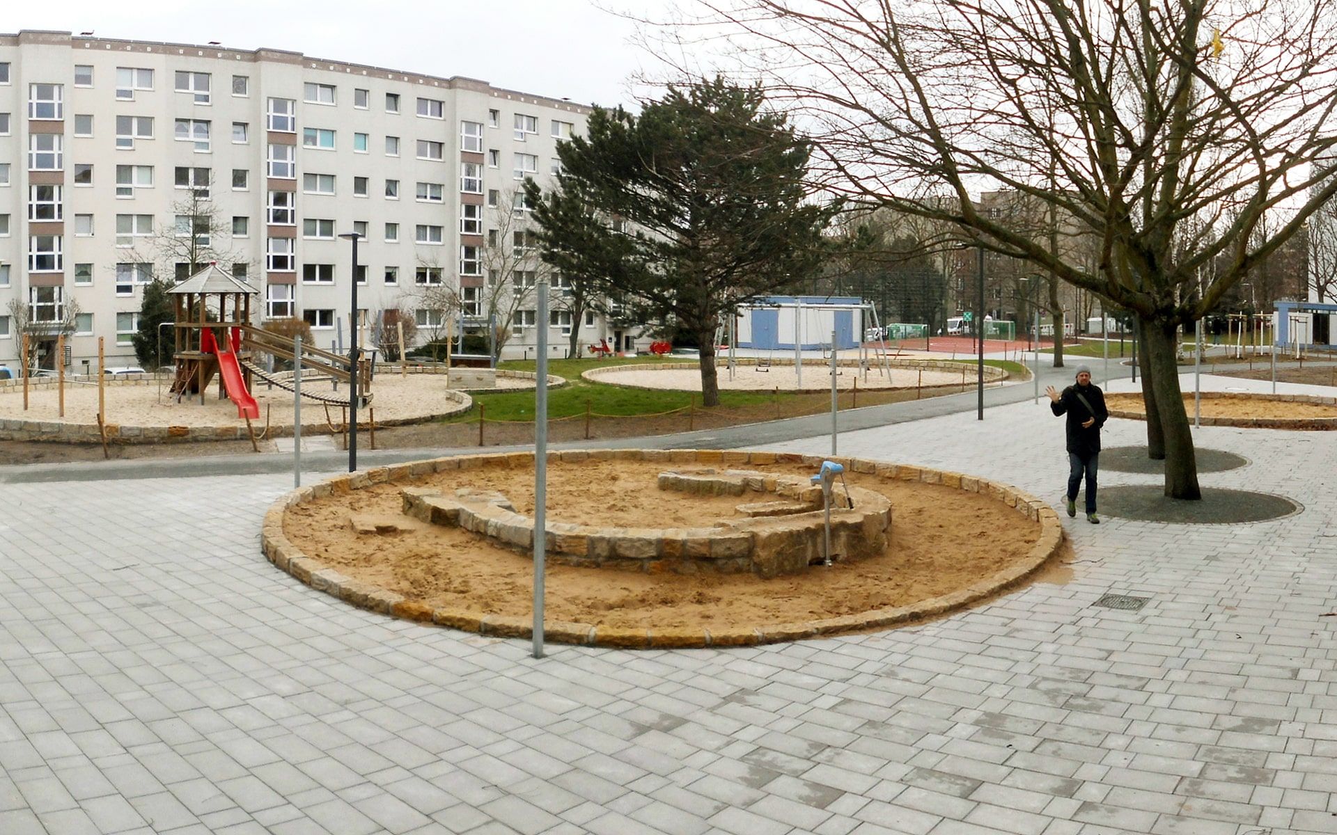 Da das Baubudget stark begrenzt war, haben wir in besonderer Weise sämtliche vorhandenen und verwendungsfähigen Baustoffe wie Betonplatten, Einfassungsblöcke, Ausstattungen und Kunstwerke zum Wiedereinbau verwendet und damit nicht nur Kosten gespart, sondern auch einen entscheidenden bauenergetischen Beitrag für die Umwelt geleistet.