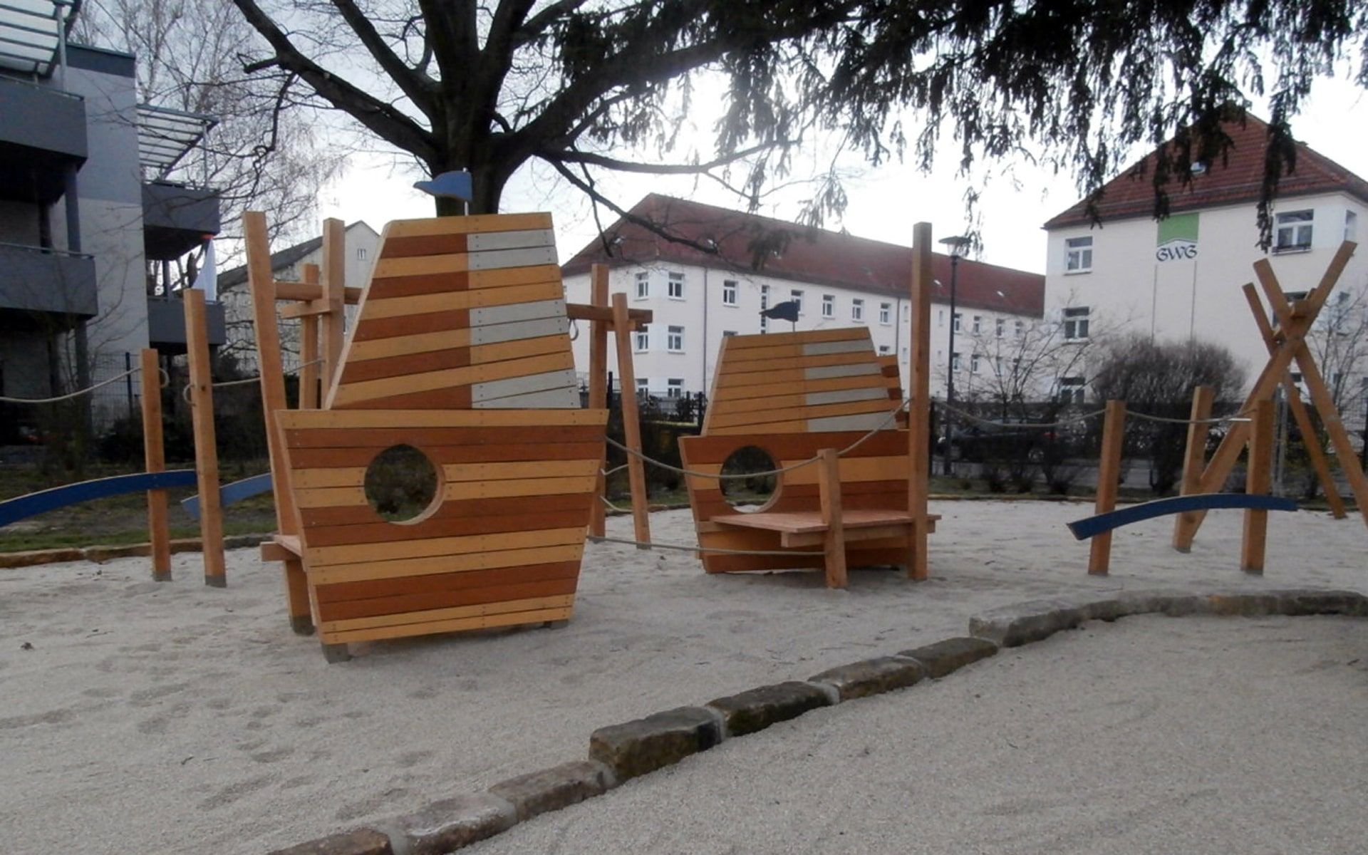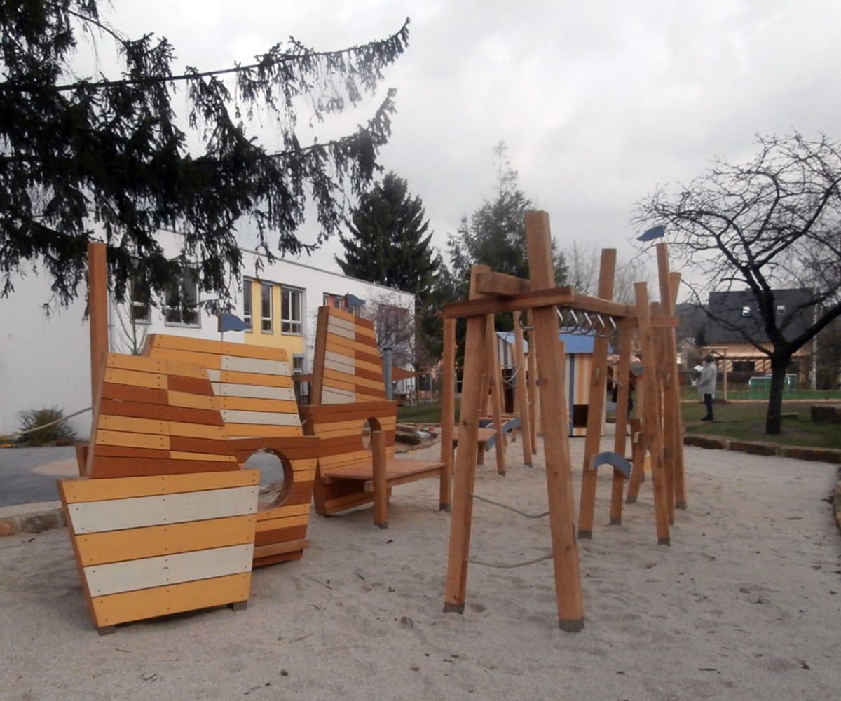 Aus der ersten Idee bis zum fertigen Projekt blieb uns nicht viel Zeit. Da die Kita in der Nähe der Elbwerft befindlich ist, haben wir das Thema „Wasserwellen und Schiffe“ favorisiert und die Spielbereiche erstmals für Krippe und Kindergarten getrennt untergebracht. Alle Spiel- und Gartenflächen liegen in linsenförmigen „Schiffchen“ auf dem Gelände. Realisiert wurden unter anderem auch ein Bolzplatz sowie fehlende Aussattungen. Unter Wahrung der meisten bereits vor Ort befindlichen Elemente entstand ein völlig neuer Freispielbereich, der begeistert angenommen wurde.